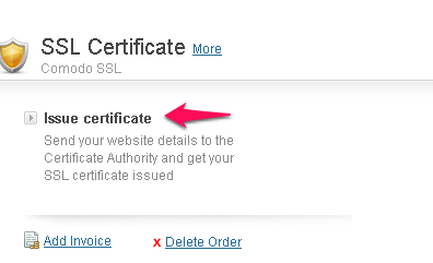 In the Order Information view, navigate to the SSL Certificate section and click on Issue certificate.