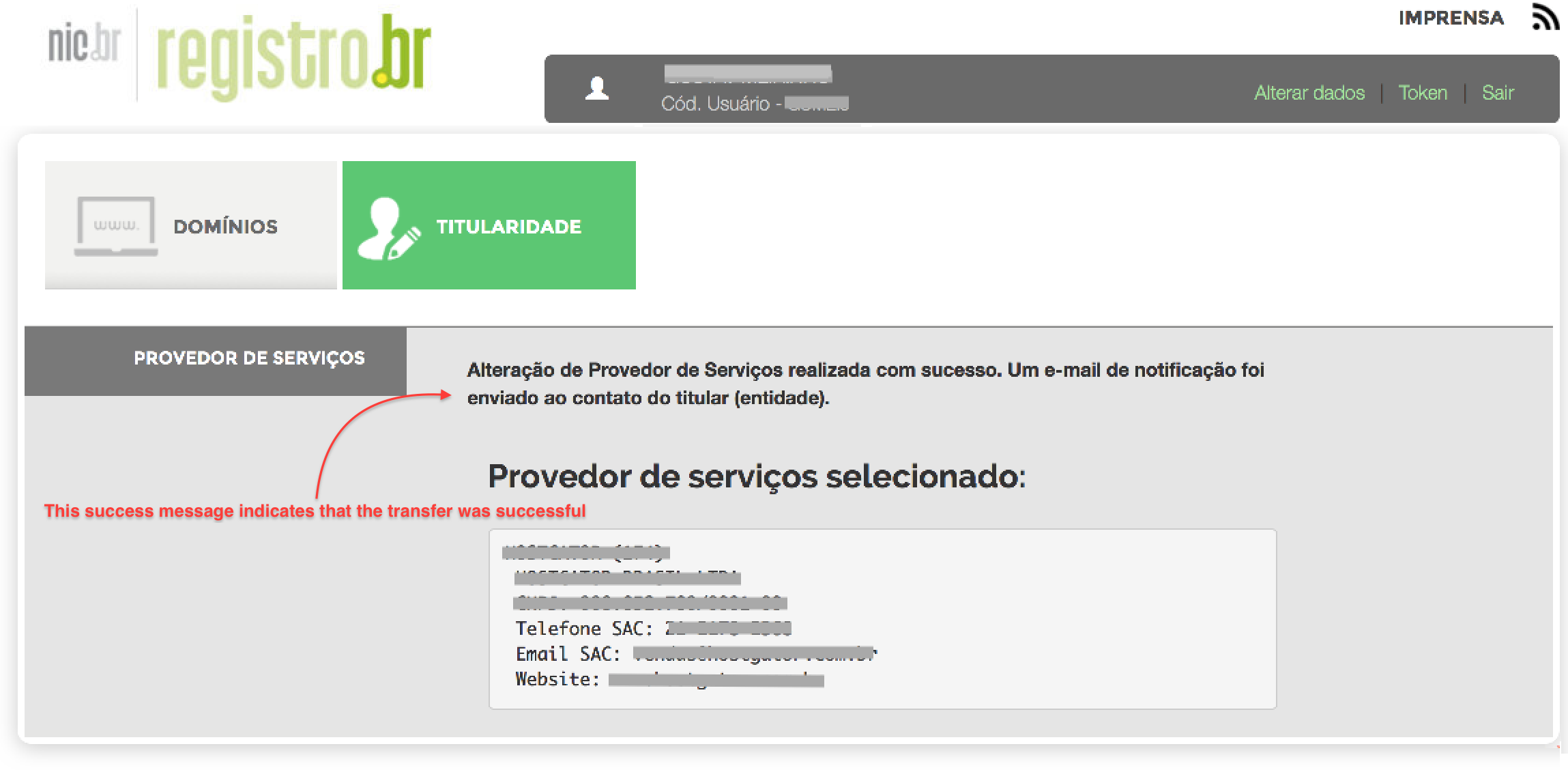 Once you confirm, the contact will be transferred immediately. You can now use this BR Owner contact to register .BR domain names with Forever.