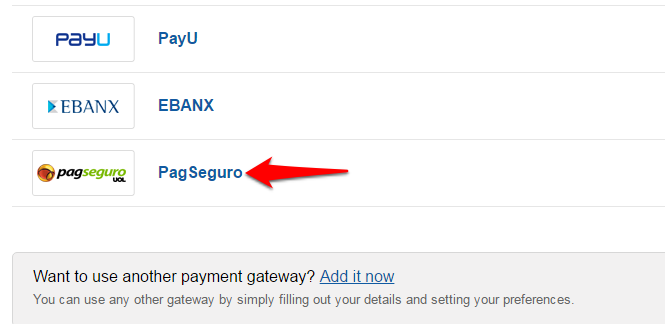 Step 3: Select the PagSeguro payment gateway.