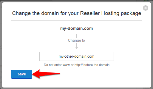 Example: If there is an existing Single Domain Linux Hosting package for mydomain.com, you cannot change the primary Domain name of another Single Domain Linux Hosting package to mydomain.com.