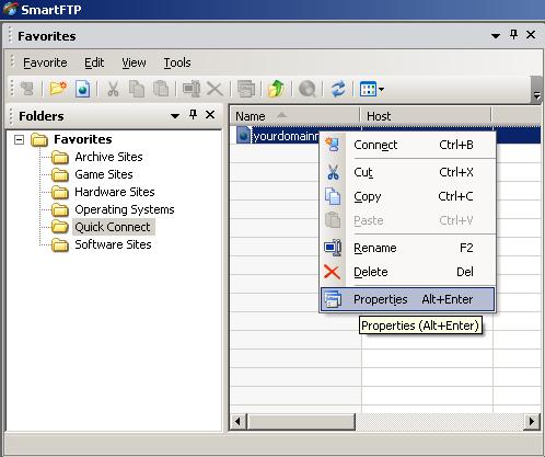 Select the site under Quick Connect folder, right-click and then click Properties.